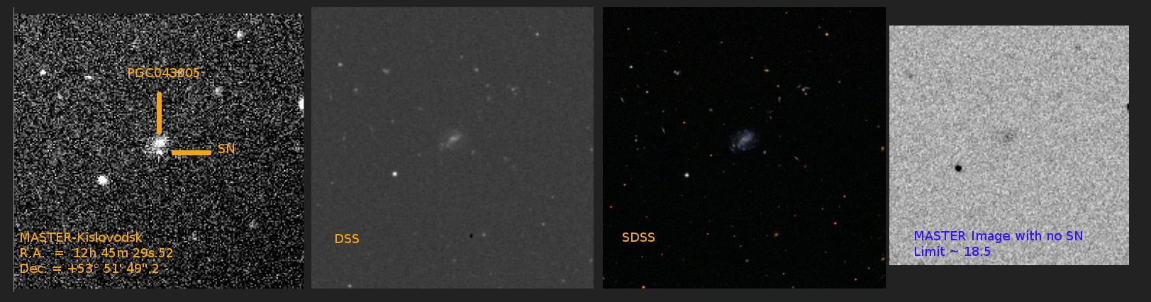 11 июня 2010г. опубликована научная телеграмма Международного Астрономиченского Союза, в которой звезде было присвоено имя SN 2010ea (В.Шумков, П.Балануца, Е.Горбовской от группы МАСТЕР, IAU Electronic Telegram No.2320).