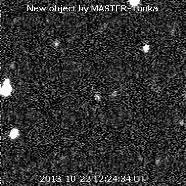 Владимир Михайлович Липунов (заведующий Лаборатории космического мониторинга) открыл астероид на телескопе сети МАСТЕР в Бурятии (МАСТЕР-Тунка) в созвездии Пегаса (22 24 02.9 +03 11 33). Скорость движения была 7.2″ в минуту в направлении на северо-восток. Анимация трех первых снимков за 12:24-12:28 UT 22 октября: