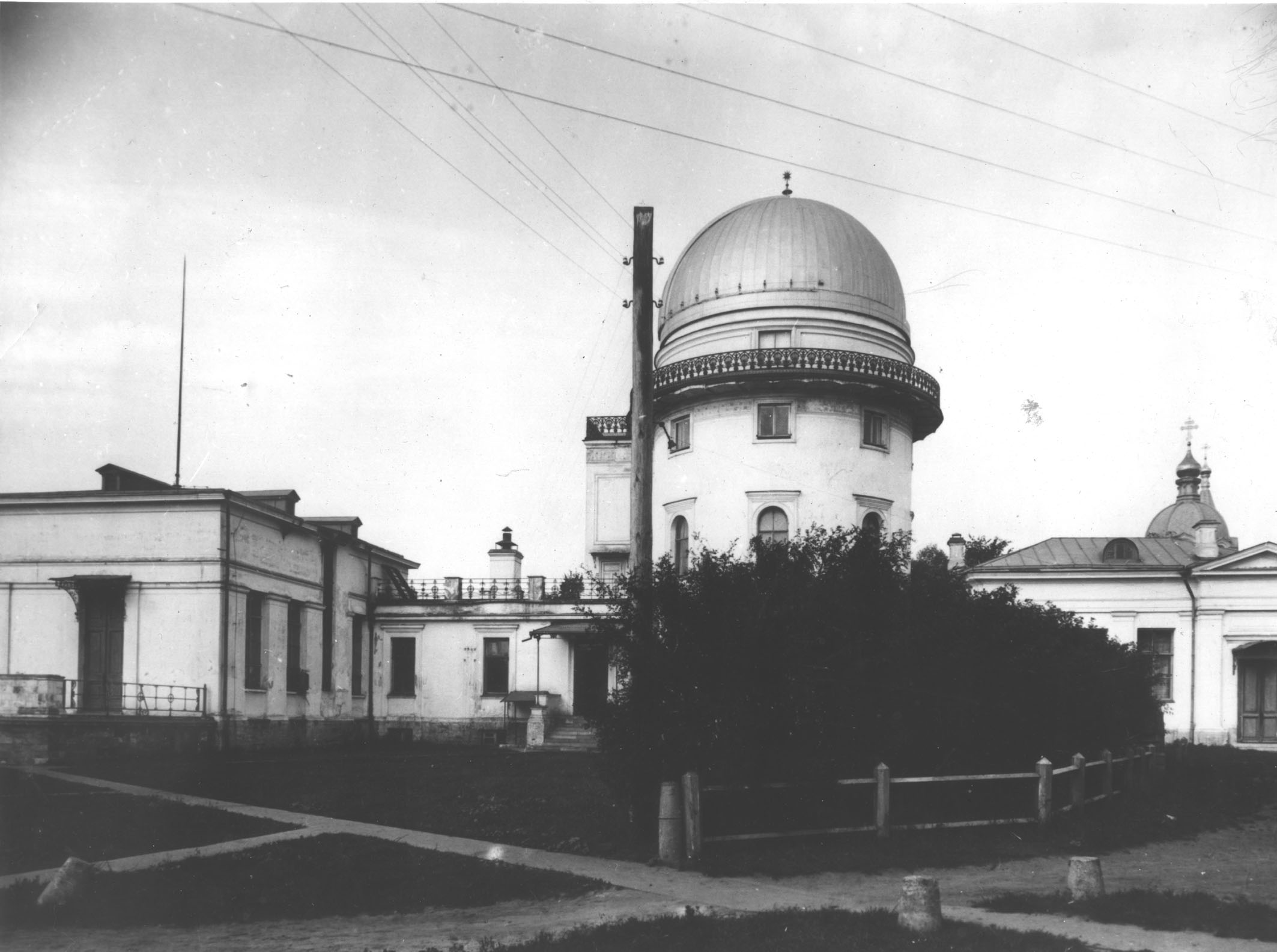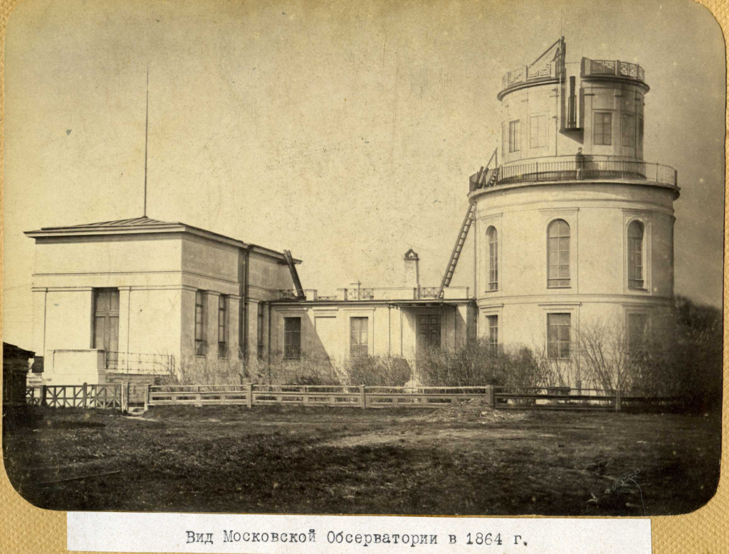 Создателем АО и ее первым директором был профессор астрономии Московского университета, видный ученый-просветитель Дмитрий Матвеевич Перевощиков (1788-1880). (Рис. 2) Главное здание АО и двухэтажный дом астрономов-наблюдателей были построены по проекту Дормидонта Григорьевича Григорьева (1789-1856), являвшегося с 1819 по 1832 гг. архитектором Московского университета. Важной особенностью главного здания АО является двойной фундамент (один — под стенами, другой, более глубокий, — под башней), что позволило в дальнейшем устанавливать в АО высокоточные, тяжелые инструменты. К 1850-м гг. обсерваторию полностью оснастили всеми необходимыми инструментами, и в ней началась регулярная научная работа. Первая фотография АО была сделана в 1864 году Богданом Яковлевичем Швейцером (1816-1873), директором обсерватории, профессором астрономии одним из основоположников гравиметрии в России. (Рис.3)