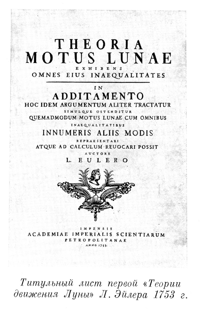 Остроумной находкой Эйлера стало то, что, используя разложение в ряды, он в качестве первого приближения учитывал наибольшие возмущения, а затем переходил к учету более мелких, что обеспечивало лучшую сходимость рядов и т.о. решение задачи. Его первая аналитическая теория движения Луны (1753г), в которой он продолжил и значительно усовершенствовал аналогичную теорию Клеро (1752г.), стала основой для очень точных лунных таблиц, составленных в 1755г. Т. Майером (за эти работы была выплачена в 1765г. давно объявленная премия английского парламента, поделенная между Л. Эйлером, вдовой Т. Майера и изобретателем хронометра Дж. Гаррисоном, получившим основную сумму — сказалось наступление века технического прогресса). Кстати, и эта работа, и большинство трудов Эйлера, жившего в Берлине, но остававшегося почетным иностранным членом Петербургской академии, печатались на её средства. После возвращения в Россию, в сочинениях 1770 и 1772 гг. Эйлер завершил развитие своей теории возмущенного движения Луны. Как поняли значительно позднее, лунная теория Эйлера 1772г. по точности на сто лет опережала свою эпоху.