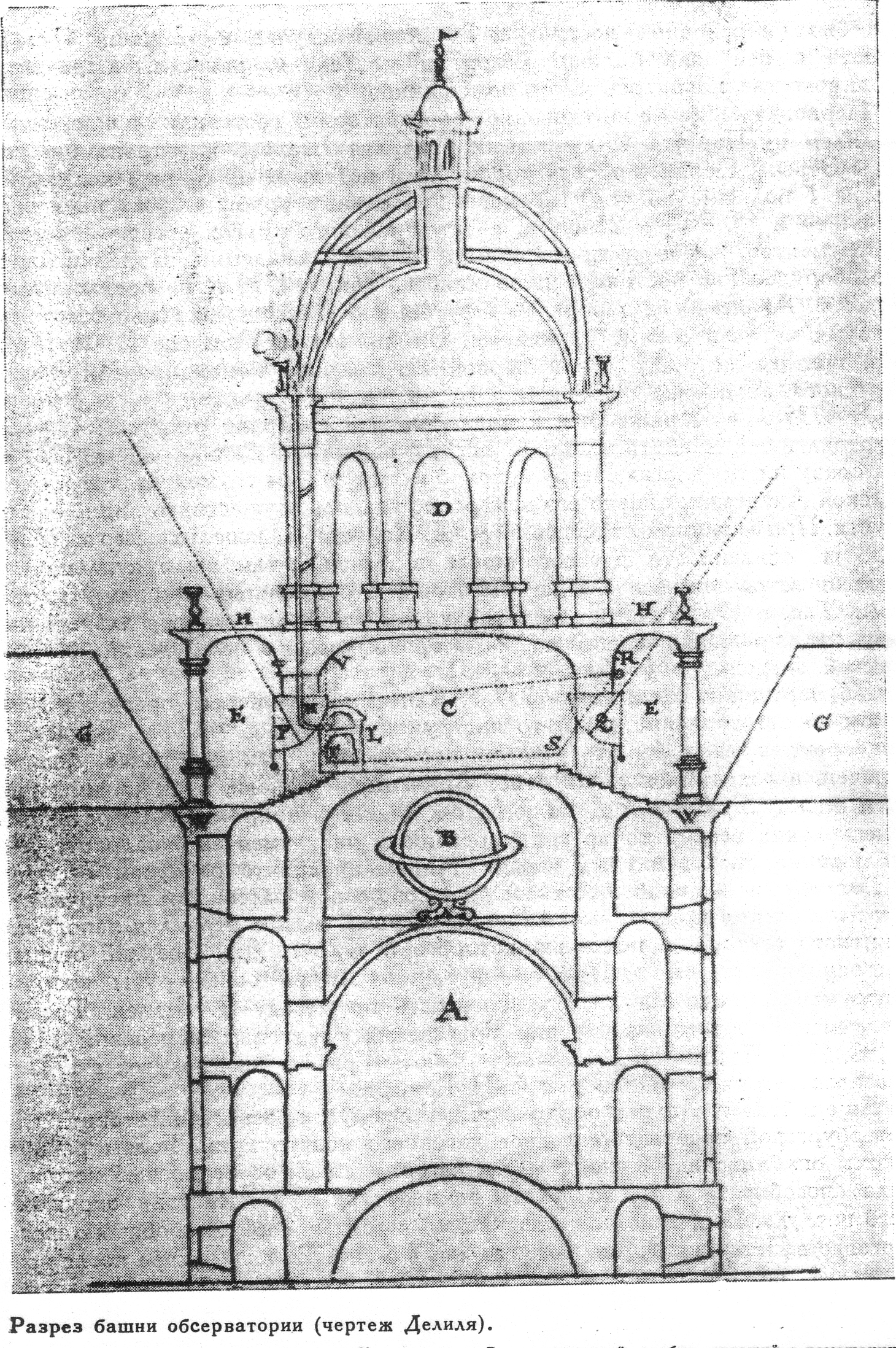 Делиль с энтузиазмом принял приглашение российского самодержца. Один из первых ньютонианцев на континенте, он немало натерпелся от засилья в Париже упорных приверженцев уже отжившего свое картезианства, не признававших во главе с новым директором Парижской обсерватории сыном Дж. Кассини, новых открытий Ньютона. Уже в начале 1726г. Делиль прибыл в Петербург со своим детальным, составленным еще для царя планом строительства и оборудования первой в России государственной обсерватории, которая вскоре получила широкую известность, вызывая в Европе восхищение и своей продуманной архитектурой, и своим богатым оборудованием (рис.5, 6).