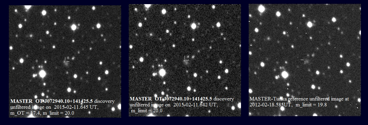Европейская Южная обсерватория, 3.6-м телескоп NTT(The ESO New Technology Telescope) на горе La Silla(Chile) получил спектр для Сверхновой, открытой на телескопе МАСТЕР-Тунка с помощью математического обеспечения обработки изображений сети МАСТЕР, во время инспектирования поля гамма-всплеска GRB150210A (Fermi observatory) Олегом Грессом (научная телеграмма ATel7050 http://www.astronomerstelegram.org/?read=7050).