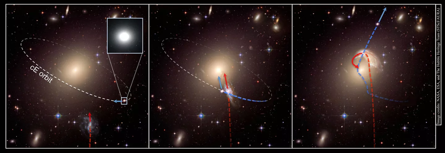 Анализ показал, что эти необычные карлики действительно рождаются в результате «обдирания» относительно больших эллиптических галактик, падающих на крупные спиральные галактики. В процессе этого падения они лишаются большей части материи, и от них остается одно плотное ядро, которое затем выбрасывается в ходе процесса, напоминающего то, что происходит с парами звезд, которые сближаются со сверхмассивной черной дырой в центре Галактики.
