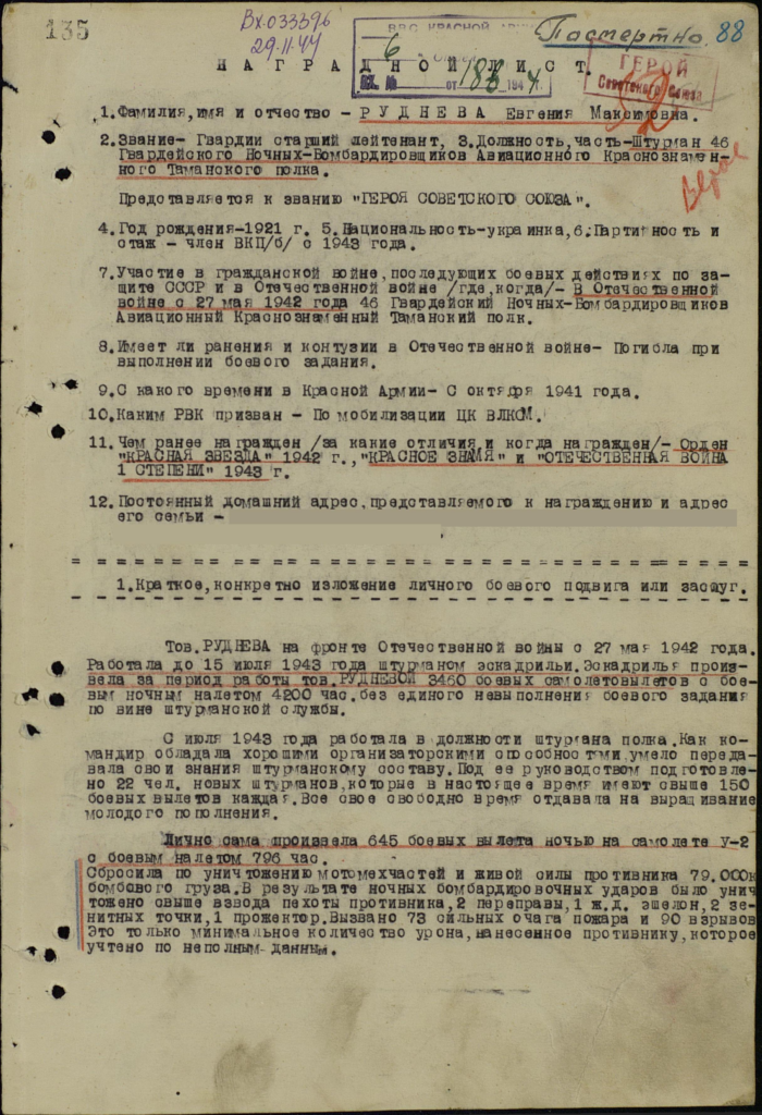 Наградной лист