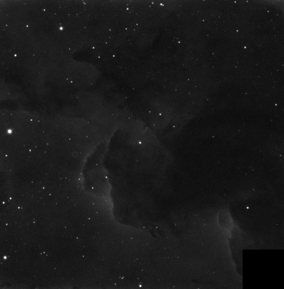 IC1396: фрагмент газовой туманности в большом комплексе звездообразования созвездия Цефея (фильтр Н-альфа 6563А)