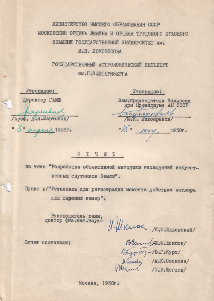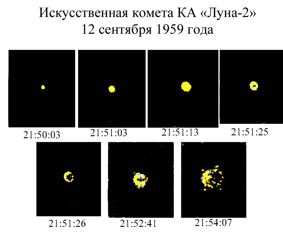 Ученые ГАИШ внесли существенный вклад в подготовку и проведение космических исследований, а также в обработку и изучение полученных результатов. В частности, выполняя задание Главного конструктора ракетно-космической техники академика С.П. Королева, И.С. Шкловский разработал метод так называемой «искусственной кометы», который позволял точно определять координаты космических аппаратов на больших расстояниях от Земли посредством выброса с борта аппарата в пространство облака паров натрия или лития, ярко флюоресцирующих под действием солнечного излучения. Активное участие в создании и испытании аппаратуры для наблюдения «искусственной кометы» принимали ученики И.С. Шкловского – В.Ф. Есипов и В.И. Мороз, которым 12 сентября 1959 года удалось получить уникальные снимки «искусственной кометы», образованной с борта АМС «Луна–2» на расстоянии 150000 км от Земли. Созданием испарителя натрия и участием совместно со Шкловским в испытаниях на полигоне Капустин Яр на Волге занимался другой его ученик – В.Г. Курт. Испытания 19 сентября 1958 года прошли успешно. Огромное облако оранжевого цвета, распустившееся на высоте более 400 километров, было видно невооруженным глазом. Позже Курт вспоминал, что Шкловский, глядя на это облако, тут же придумал ему тему кандидатской диссертации – «Диффузия паров натрия в верхней атмосфере Земли». (Изучение процессов диффузии позволяло рассчитать плотность воздуха в верхних слоях атмосферы.) Диссертацию на эту тему Курт успешно защитил через полтора года после испытаний. 22 апреля 1960 года И.С. Шкловскому за разработку метода «искусственной кометы» была присуждена Ленинская премия.